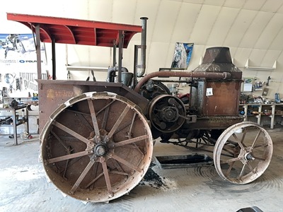 1920 Rumley Oil Pull 16-30 2WD Steel Wheel Tractor w/ 56 1/2" REAR STEEL WHEELS, 40" FRONT STEEL WHEELS, FLY WHEEL, CANOPY, SPARE PARTS s/n 7059 |
