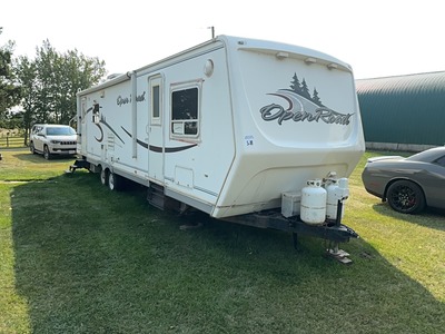 OPEN ROAD 318RLDS 31' T/A B/P HOLIDAY TRAILER - WILL NEED REPAIRS w/ 2- SLIDES, SLEEPS 6, FRIDGE, STOVE, OVEN, MICROWAVE, DUAL ENTRY, REAR LIVING ROOM, FRONT QUEEN BED, SHOWER, PRIVATE TOILET, POWER JACK, 2- 30LB PROPANE TANKS, STABILIZER BRACKETS, TOOL BOX, WINTER SKIRTING, A/C, INCLUDES ALL CONTENTS. s/n 5L4TR322951008773 |