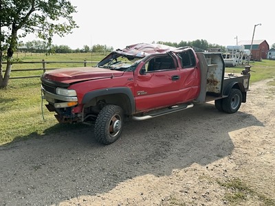 2002 CHEVY SILVERADO 3500 4X4 EXT CAB WELDING TRUCK - DOES HAVE DAMAGES w/ APPROX 301,000 KMS, DURAMAX DIESEL ENGINE, AUTOMATIC TRANSMISSION, NO SEATS, POWER WINDOWS, POWER LOCKS, AIR, TILT, CRUISE, NEW TIRES, 2- 6" VICES, TOOL CABINETS. s/n 1GBJK39152F204373 |