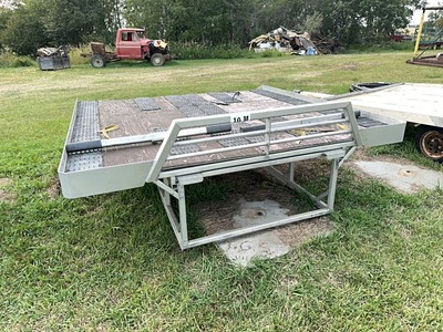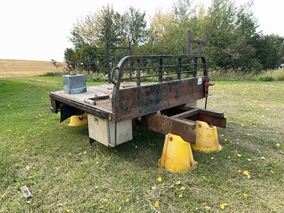 8'(W) X 9'(L) FLAT DECK w/ TOOL BOXES, 5TH WHEEL HITCH, PIPE RACK |