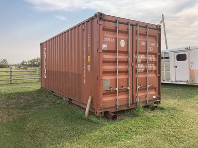 20' SEA CAN - DOES NOT INCLUDE CONTENTS w/ FORK POCKETS, VENTS, TIE DOWNS, 6" PIPE WELDED ON BOTTOM, CAN BE TOWED AROUND |