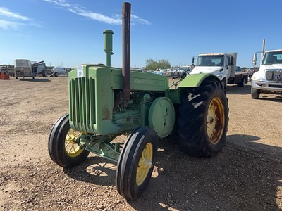 JD D 2WD TRACTOR - CONDITION UNKNOWN w/ 2 CYL ENGINE, 540 PTO, 14-30 REAR TIRES, 7.50-18 FRONT TIRES. s/n 149060 LOTS 1 TO 10 ARE GROUPED TOGETHER, THIS DOES NOT MEAN YOU HAVE TO BUY ALL LOTS IN THIS GROUP, BUT THE BIDDING WILL REMAIN OPEN ON ALL THE LOTS UNTIL THERE ARE NO MORE BIDS ON ANY LOT AT THEIR CLOSING TIME. |