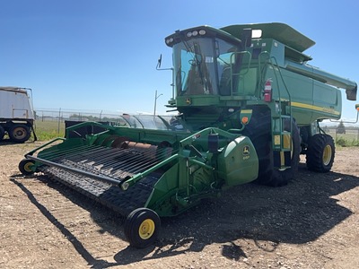 JD 9860 STS SP COMBINE w/ JD 615P 16' P/U HEADER *** UPDATE ON HRS*** w/ 12.5L ENGINE, 3 SPD HYDROSTATIC TRANS, SHOWING 3632 ENGINE HRS, 2462 THRESHING HR, STRAW CHOPPER, CHAFF SPREADER, BULLET ROTOR, 800/70R38 FRONT TIRES, BACK UP AUDIO SAFETY SIGNAL, HOPPER EXTENSIONS, AC, RADIO, BUDDY SEAT, REPAIR WORK ORDERS IN COMBINE. s/n EC4995X330850 LOTS 15 TO 20 ARE GROUPED TOGETHER, THIS DOES NOT MEAN YOU HAVE TO BUY ALL LOTS IN THIS GROUP, BUT THE BIDDING WILL REMAIN OPEN ON ALL THE LOTS UNTIL THERE ARE NO MORE BIDS ON ANY LOT AT THEIR CLOSING TIME. |