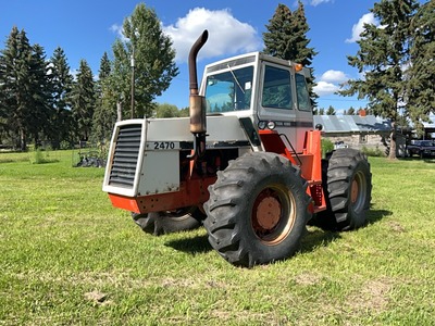 CASE 2470 4WD TRACTOR SHOWING 4159 HRS, 23.1-30 REAR TIRES, 4 HYD, 1000 PTO, CRAB STEERING, A/C, OWNERS MANUAL, SERVICE MANUAL, EXTRA FUEL FILTER, OWNER SAYS WILL NEED BATTERIES. STORED UNDER SHED s/n 8827698 LOTS 1 TO 2 ARE GROUPED TOGETHER, THIS DOES NOT MEAN YOU HAVE TO BUY ALL LOTS IN THIS GROUP, BUT THE BIDDING WILL REMAIN OPEN ON ALL THE LOTS UNTIL THERE ARE NO MORE BIDS ON ANY LOT AT THEIR CLOSING TIME. |