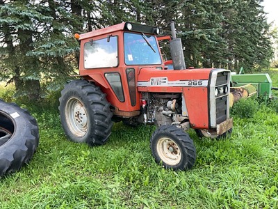 MF 265 2WD TRACTOR w/ DIESEL ENGINE, SHOWING 265 HRS, 540 PTO, 3 PTH, CAB, 16.9-30 REAR TIRES, 7.60-15 FRONT TIRES, MISSING WINDOW ON CAB DOOR, SERVICE MANUAL. s/n 9A-265859 LOTS 1 TO 2 ARE GROUPED TOGETHER, THIS DOES NOT MEAN YOU HAVE TO BUY ALL LOTS IN THIS GROUP, BUT THE BIDDING WILL REMAIN OPEN ON ALL THE LOTS UNTIL THERE ARE NO MORE BIDS ON ANY LOT AT THEIR CLOSING TIME. |