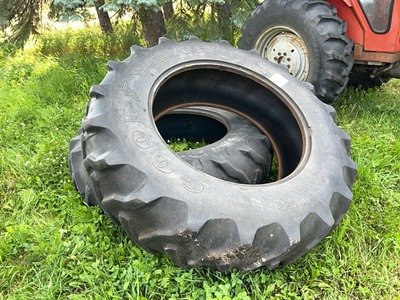 2 - GOODYEAR 18.4R38 TRACTOR TIRES - TIRES HAVE BEEN STORED INSIDE w/ SIDE WALLS HAVE CRACKS ON BOTH TIRES. |