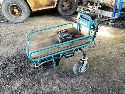 MAKITA BATTERY OPERATED WHEEL BARROW w/ CHARGERS, HYD BRAKES, MANUAL DUMP, 2 SPEED FORWARD & SIDEBOARD EXTENSIONS. LOTS 11 TO 13 ARE GROUPED TOGETHER, THIS DOES NOT MEAN YOU HAVE TO BUY ALL LOTS IN THIS GROUP, BUT THE BIDDING WILL REMAIN OPEN ON ALL THE LOTS UNTIL THERE ARE NO MORE BIDS ON ANY LOT AT THEIR CLOSING TIME. |