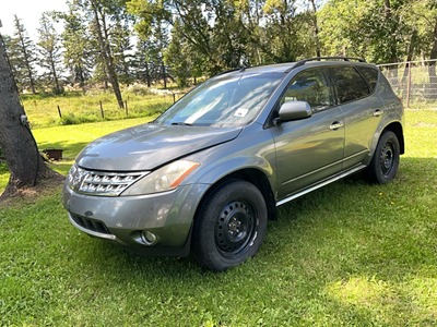 2007 MURANO SPORT LUXURY AWD SUV w/ V6 3.5 LTR ENGINE, SHOWING 154,900 KM, POWER WINDOWS, POWER LOCKS, AIR, TILT, CRUISE, HEATED SEATS, A FOB FOR PUSH BUTTON START, BLUETOOTH, SOUND SYSTEM, SUNROOF, STEEL RIMS, BRAND NEW REAR BRAKE SYSTEM, A LARGE TRUNK, LEATHER SEATS, REAR SUB FRAME NEEDS TO BE REPLACE SUBFRAME ARE AVAILABLE AT A NISSAN DEALERSHIP OR AN AUTO WRECKER. 4 SUMMER TIRES. s/n JN8AZ08W57W650313 |