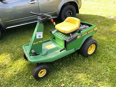 JD RX75 LAWN TRACTOR w/ 26" DECK, 9 HP KAWASAKI ELECTRIC START ENGINE, MOWER DECK IS REMOVED AS GERT USED IT AS A YARD SCOOTER. s/n M0RX75X491010 |