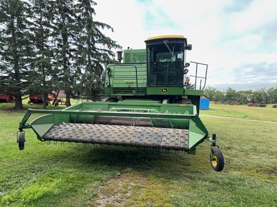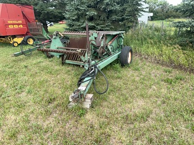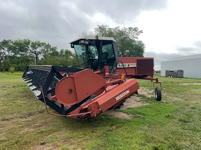 HESSTON 8100 21' S/P SWATHER w/ SHOWING 2556 HRS, CUMMINS DIESEL ENGINE, DOUBLE KNIFE, TRIPLE DELIVERY, ADJUSTABLE AXLES, BAT REEL, 21.5L-16.1 FRONTS s/n 810T 01185 TRACTOR s/n 810H 10576 HEADER LOTS 4 TO 5 ARE GROUPED TOGETHER, THIS DOES NOT MEAN YOU HAVE TO BUY ALL LOTS IN THIS GROUP, BUT THE BIDDING WILL REMAIN OPEN ON ALL THE LOTS UNTIL THERE ARE NO MORE BIDS ON ANY LOT AT THEIR CLOSING TIME. |