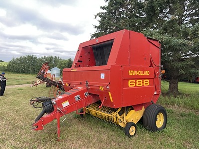 NH 688 RD BALER w/ 1000 PTO, TWINE ONLY, BALE KICKER, 31X13.5-15 NHS TIRES s/n 4587 LOTS 10 TO 11 ARE GROUPED TOGETHER, THIS DOES NOT MEAN YOU HAVE TO BUY ALL LOTS IN THIS GROUP, BUT THE BIDDING WILL REMAIN OPEN ON ALL THE LOTS UNTIL THERE ARE NO MORE BIDS ON ANY LOT AT THEIR CLOSING TIME. |