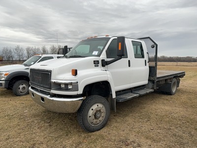 2007 GMC 5500 4x4 QUAD CAB S/A FLAT DECK TRUCK SHOWING 164,328 KMS, DURAMAX 6.6 LTR DIESEL ENGINE, AUTO TRANSMISSION, CLOTH INTERIOR, POWER WINDOWS, POWER LOCKS, AIR, TILT, CRUISE, BRAKE CONTROLLER, 8' (W) x 12' (L), TOOL BOXES, STEEL DECK, HEADACHE RACK, PINTAL HITCH, SLIDING STRAP WINCHES, 5TH WHEEL AND GOOSENECK, WINTER FRONTS, HAND WATER TANK, s/n 1GDE5E3277F416602 https://vhr.carfax.ca/?id=i0EojCT%2FWcArUh7LTGWwefC98GmsSp5D LOTS 1 TO 4 ARE GROUPED TOGETHER, THIS DOES NOT MEAN YOU HAVE TO BUY ALL LOTS IN THIS GROUP, BUT THE BIDDING WILL REMAIN OPEN ON ALL THE LOTS UNTIL THERE ARE NO MORE BIDS ON ANY LOT AT THEIR CLOSING TIME. |
