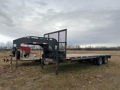 2008 PRECISION 24' TRIDEM GOOSENECK TRAILER 8 1/2'(W), WOODEN DECK WAS REDONE THIS YEAR, ELECTRIC BRAKES, SIDEBOX, STORAGE OVER NECK, RAMPS, GOOSENECK OR 5TH WHEEL HITCH s/n 2P9FG82998P078120 LOTS 5 TO 10 ARE GROUPED TOGETHER, THIS DOES NOT MEAN YOU HAVE TO BUY ALL LOTS IN THIS GROUP, BUT THE BIDDING WILL REMAIN OPEN ON ALL THE LOTS UNTIL THERE ARE NO MORE BIDS ON ANY LOT AT THEIR CLOSING TIME. |