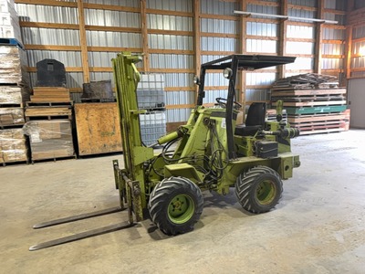 SWINGER 100 ARTICULATED FORKLIFT SHOWING 5771 HRS, 4 CYL CONTINENTAL GAS ENGINE, 3 STAGE KNICKERBOCKER MAST, 150" LIFT, 42" FORKS, 48" CARRIAGE, SIDESHIFT, HYD SQUEEZE, SELLS WITH ARMS WITH QUICK CHANGE SNOW BUCKET, FORKS, & 66" UNIDIRECTION BLADE, REAR HITCH s/n N/A LOTS 11 TO 17A ARE GROUPED TOGETHER, THIS DOES NOT MEAN YOU HAVE TO BUY ALL LOTS IN THIS GROUP, BUT THE BIDDING WILL REMAIN OPEN ON ALL THE LOTS UNTIL THERE ARE NO MORE BIDS ON ANY LOT AT THEIR CLOSING TIME. |