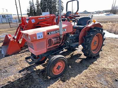 KUBOTA L-1501 2WD TRACTOR SHOWING 968 HRS, 15 HP ENGINE, 16 FORWARD & 4 REVERSE TRANSMISSON, 3 PTH, 540 PTO. OWNER SAYS WAS ALWAYS SHEDDED & IS IN GREAT SHAPE. MANUAL IN OFFICE s/n 111788 LOTS 16A TO 20A ARE GROUPED TOGETHER, THIS DOES NOT MEAN YOU HAVE TO BUY ALL LOTS IN THIS GROUP, BUT THE BIDDING WILL REMAIN OPEN ON ALL THE LOTS UNTIL THERE ARE NO MORE BIDS ON ANY LOT AT THEIR CLOSING TIMECATEGORY: TRACTORS 123 |