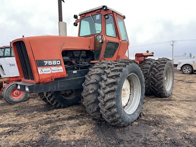 ALLIS CHALMERS 7580 4WD TRACTOR SHOWING 5615 HRS APPROX, 150 HP, 20 SPEED PARTIAL POWERSHIFT, BIG 1000 PTO, 3 HYD, 18.4X38 DUALS. OWNER SAYS WILL NEED A BOOST TO START. s/n 7580229379 LOTS 16A TO 20A ARE GROUPED TOGETHER, THIS DOES NOT MEAN YOU HAVE TO BUY ALL LOTS IN THIS GROUP, BUT THE BIDDING WILL REMAIN OPEN ON ALL THE LOTS UNTIL THERE ARE NO MORE BIDS ON ANY LOT AT THEIR CLOSING TIMECATEGORY: TRACTORS 123 |