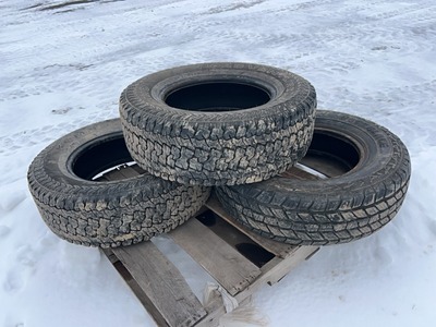 3 - ASSORTED TIRES - RIM VALUE ONLY w/ 265/75R16 TIRE ON 8 HOLE RIM, 205/75R15 TIRE ON 5 BOLT RIM & G78-15 TIRE ON 5 BOLT RIM |